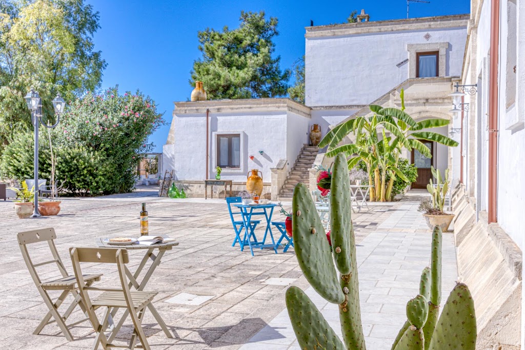 Masseria Prisuti, in Contrada Palude del Conte, è il tipo di alloggio che scegli quando vuoi davvero staccare: silenzio, verde tutto intorno e alcune delle spiagge più belle del Salento a pochissimi minuti. È perfetta per coppie e famiglie che cercano una base comoda per il mare senza rinunciare al relax della campagna.
