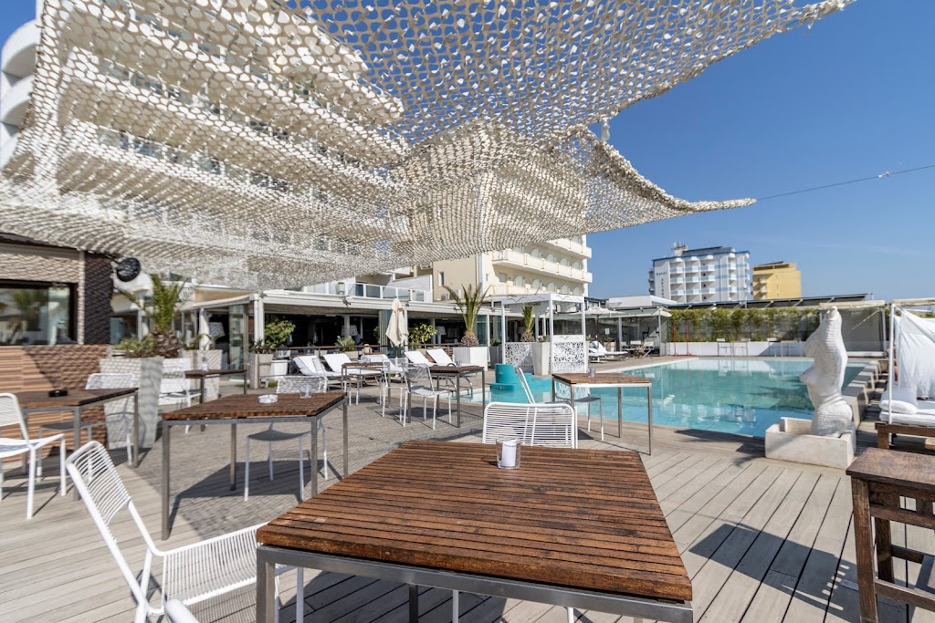 Il punto forte è l’integrazione perfetta tra hotel e lido: una bellissima piscina accanto alla spiaggia dove alternare un bagno rinfrescante al relax sotto il sole. Al posto dei soliti lettini, ci sono comodi “king size” con teli eleganti che creano il giusto equilibrio tra ombra e luce: ideale per coppie, amici o per chi vuole semplicemente leggere in tranquillità senza il caos intorno.