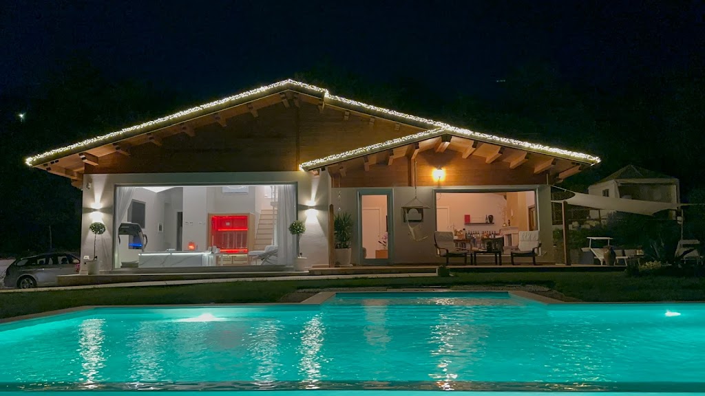 Il punto forte è l’area benessere, che rende il soggiorno speciale in ogni stagione. La sauna privata in camera crea un’atmosfera intima e rilassante, perfetta per coppie o per chi vuole ritagliarsi un momento tutto per sé. All’esterno, la vasca idromassaggio con vetrata invita a godersi il panorama con calma, mentre il giardino con piscina regala quel senso di vacanza piena, immersa nel verde.