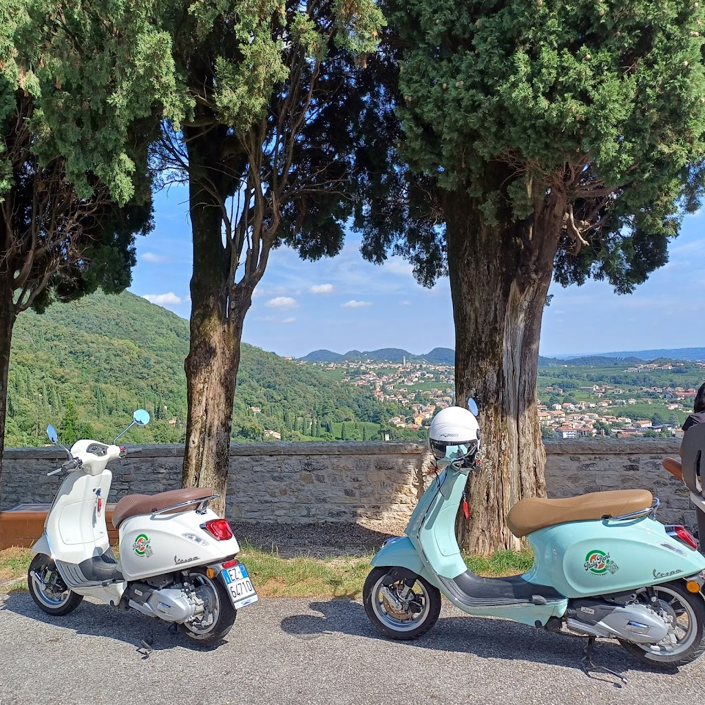 Abbiamo noleggiato due Vespe ed è stata un'esperienza fantastica! Siamo stati accolti calorosamente e ci hanno fornito una spiegazione breve ma chiara, insieme a un'utile mappa cartacea del percorso. Sono stati anche molto flessibili sull'orario di ritiro, cosa che abbiamo apprezzato molto. La zona è assolutamente meravigliosa da esplorare in Vespa: borghi incantevoli, strade tranquille e panorami mozzafiato. Ci siamo divertiti moltissimo e lo consigliamo vivamente a chiunque cerchi un modo divertente per scoprire la regione del Prosecco!