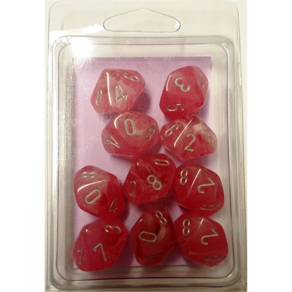 27324 Set 10 Dadi D10 Ghostly Glow Pink w/silver