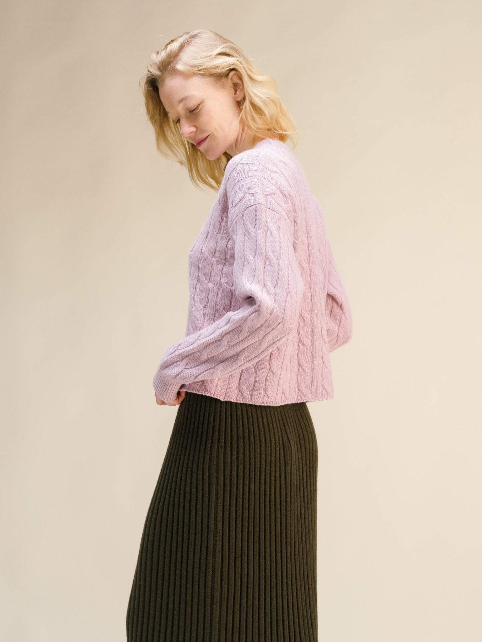 Cashmere Mix Cropped Cable Crewneck Sweater