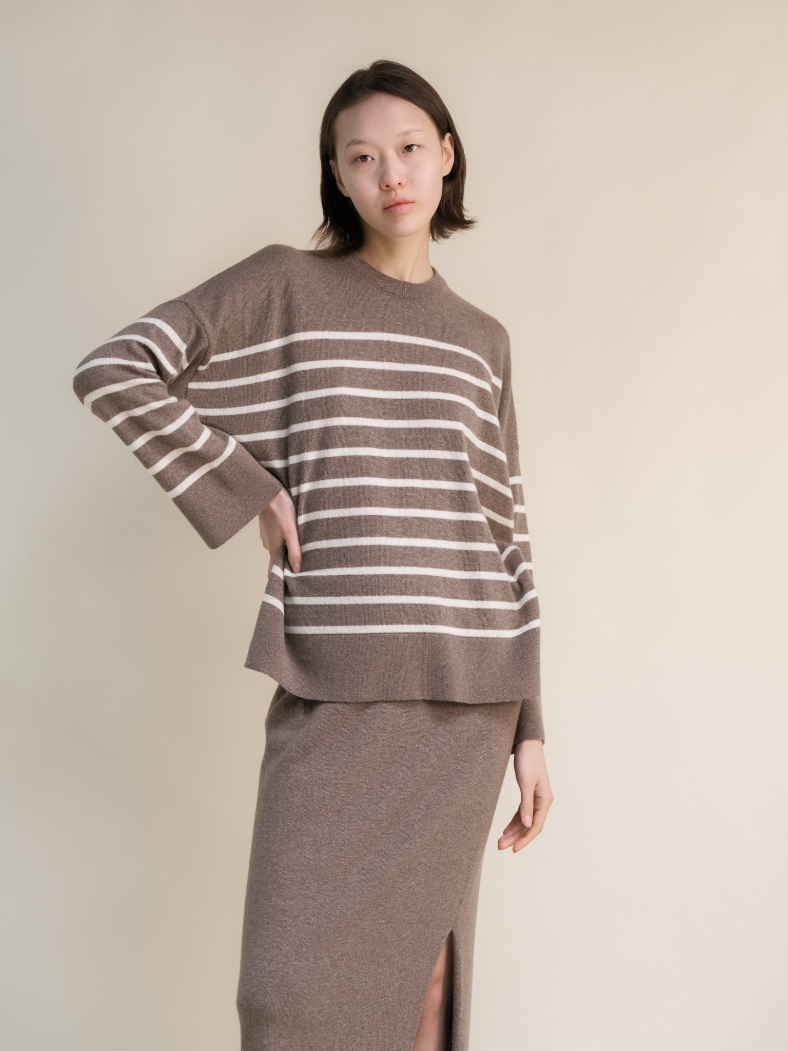 Cashmere Mix Striped Crewneck Sweater