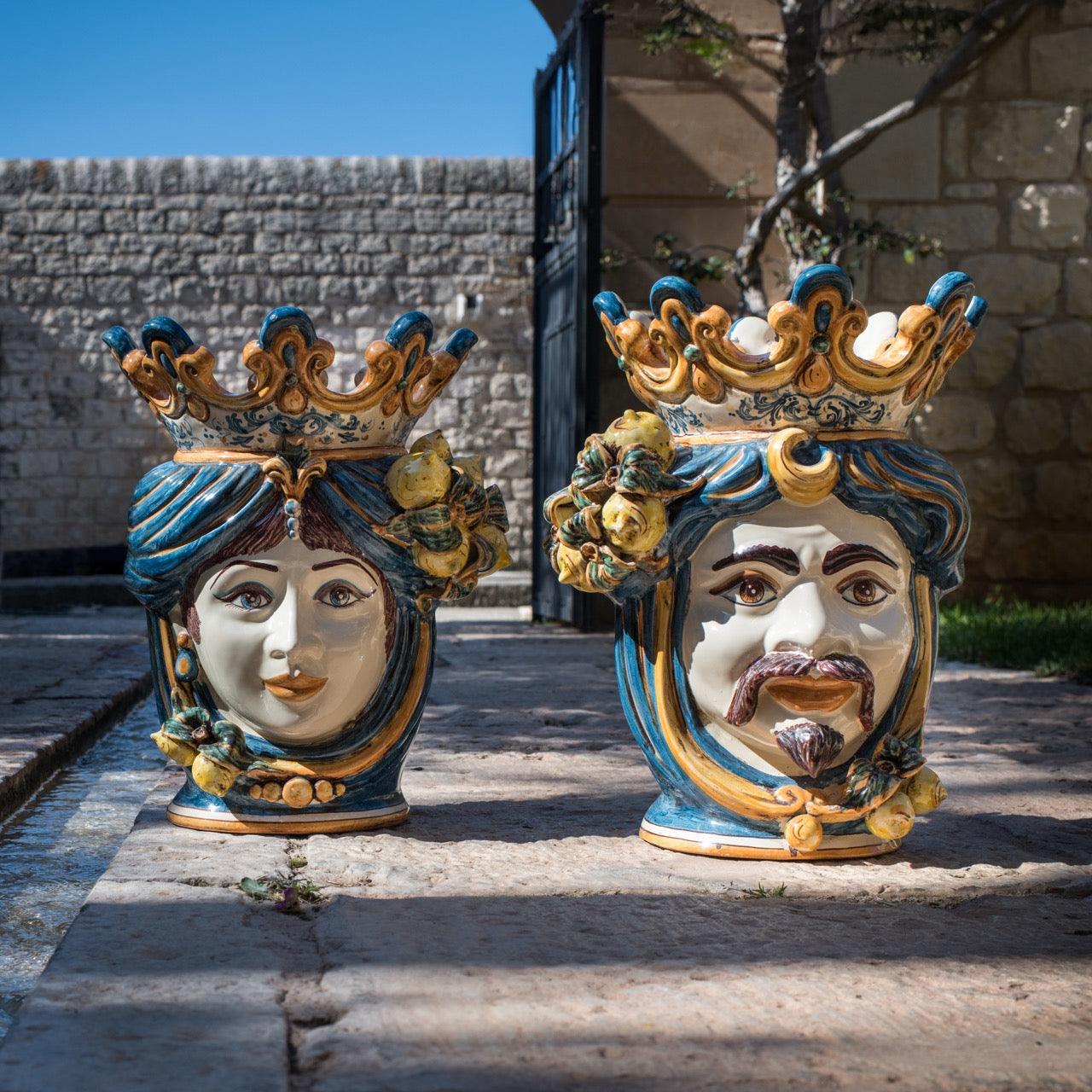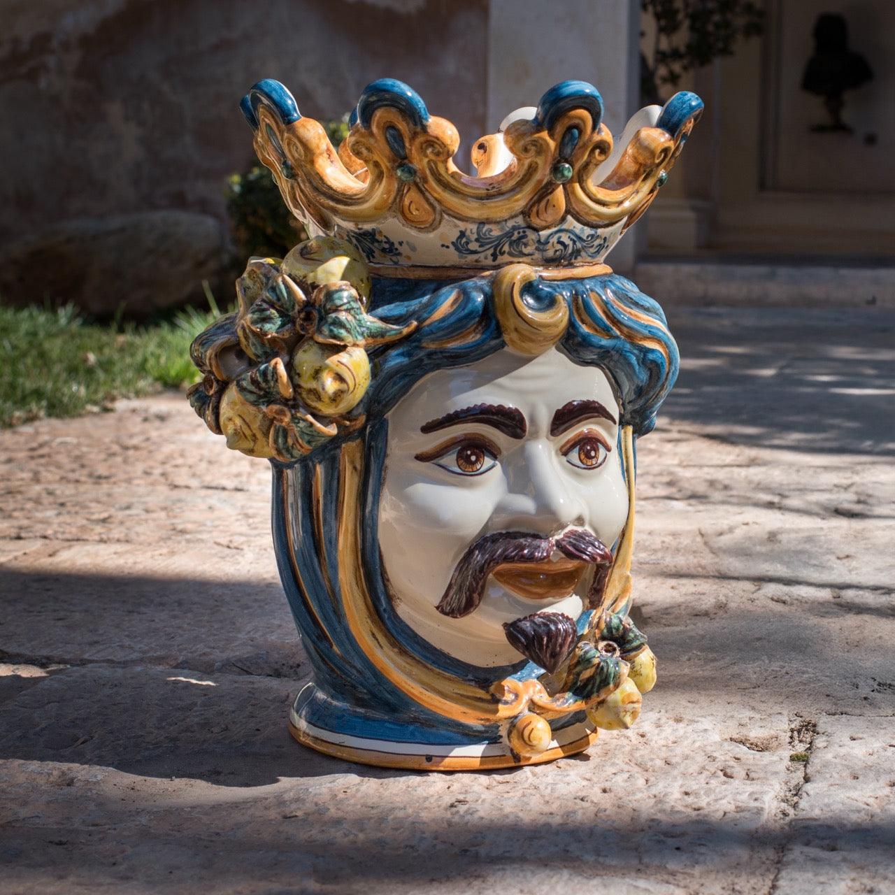 Scopri la meravigliosa "Testa h 40 limoni blu e arancio maschio bianco", un'opera d'arte artigianale in ceramica di Caltagirone che... Per saperne di più