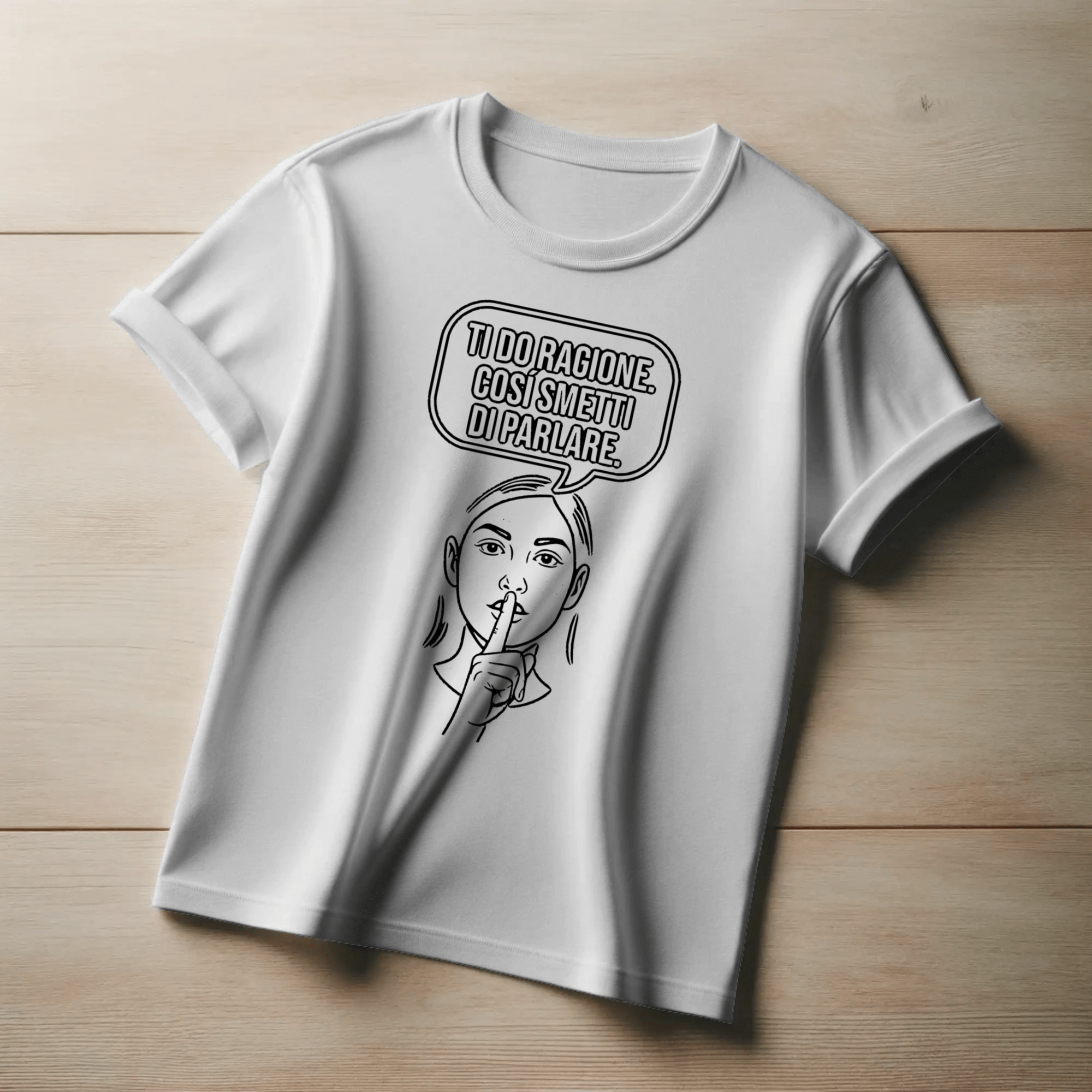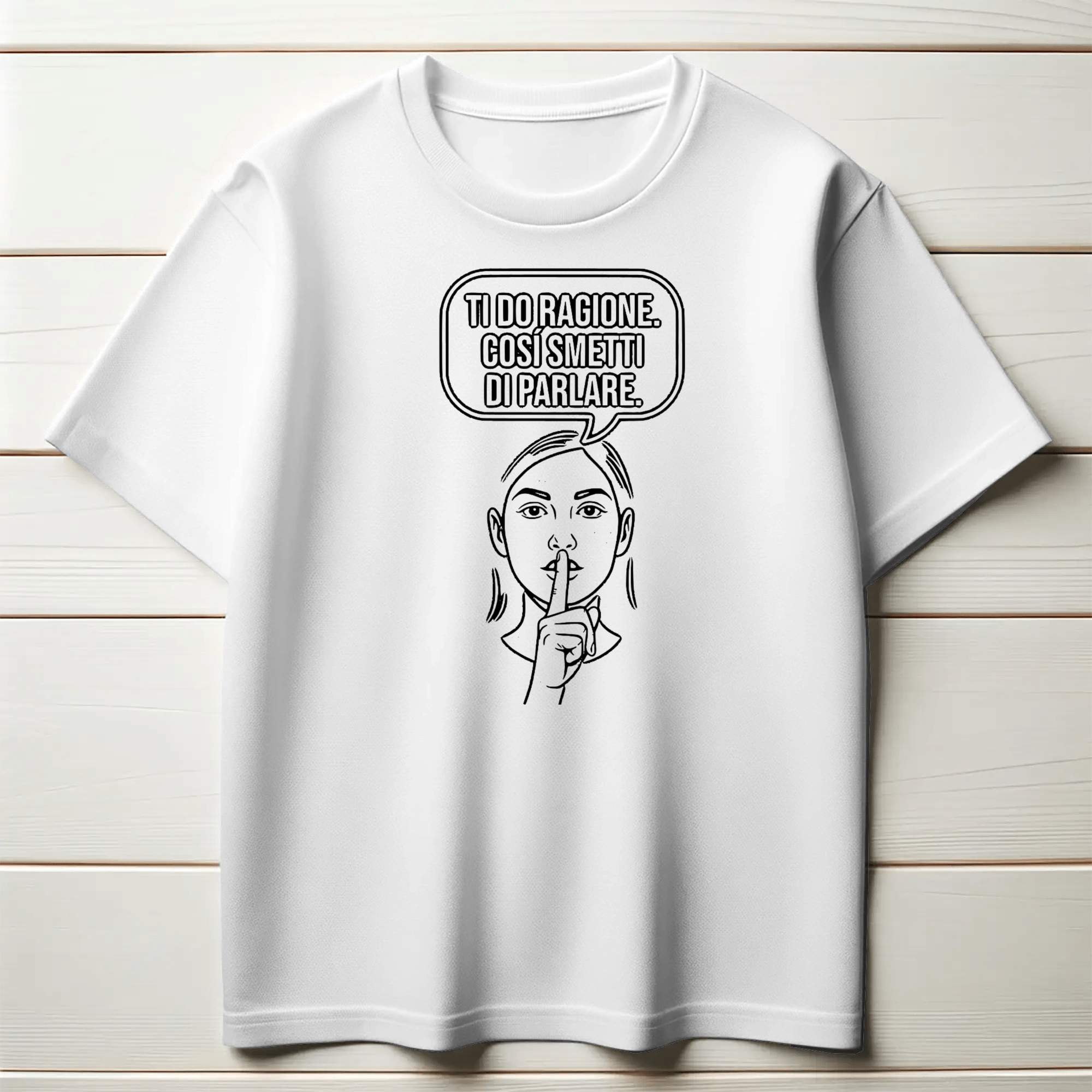 Scopri la nostra t-shirt "Ti do ragione. Così smetti di parlare." per un look audace e divertente. Questa maglietta unisex... Per saperne di più